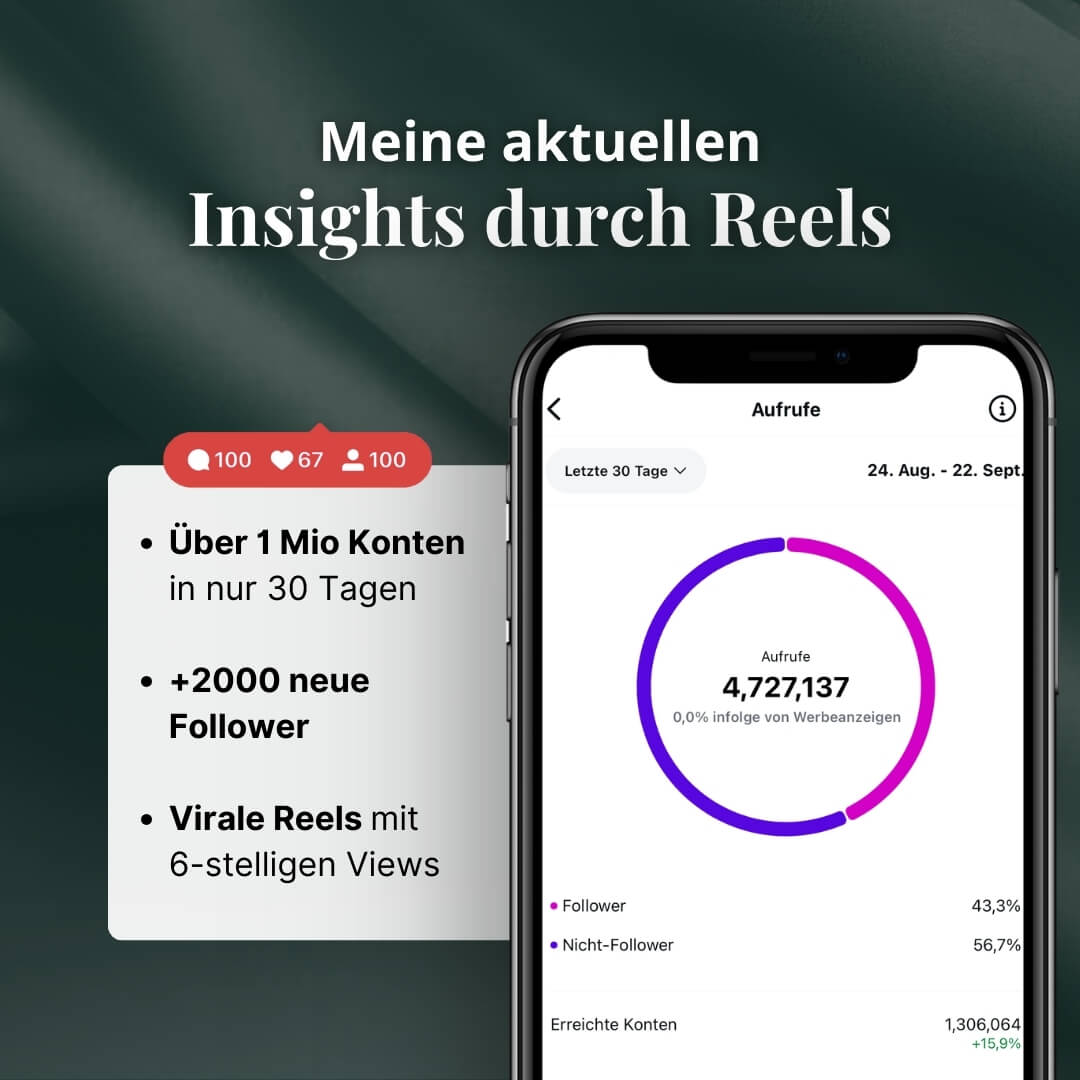 Virale Reels, Auszeichnungen auf Instagram, eine Million erreichte Konten in dreißig Tagen, mehrere hundert neue Follower über die Challenge.